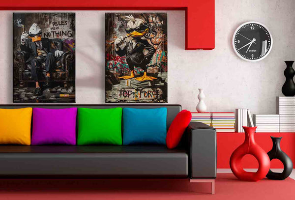 Mach deine Wand zum Machtzentrum – mit dem „RULES MEAN NOTHING“ Leinwandbild von AK ART.